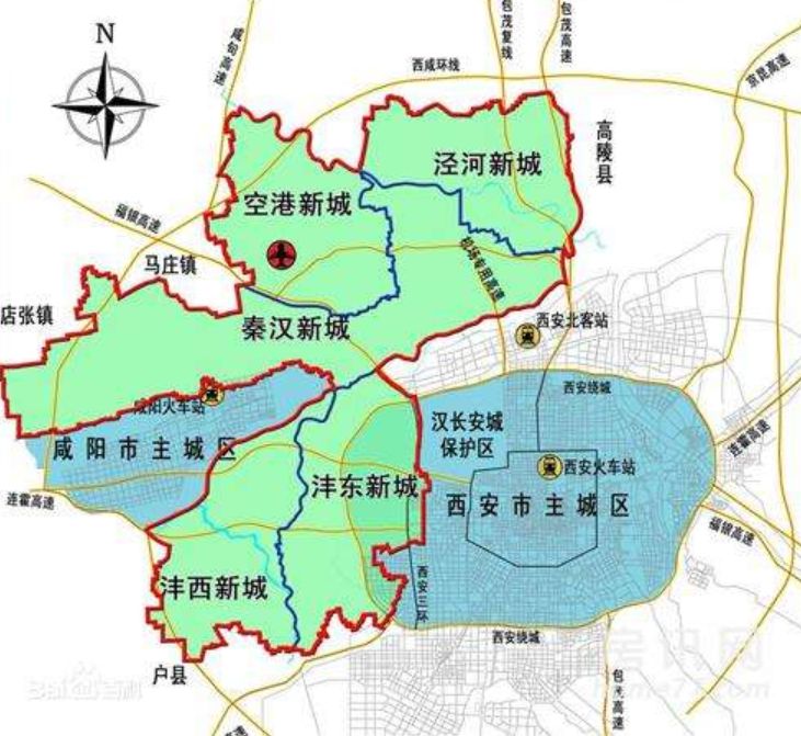 2017年初,原本涵盖西安和咸阳两市区域的西咸新区,交由西安代管,西安城市边界迅速推进。