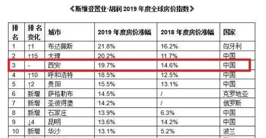 这几天,胡润研究院发布《胡润2019年度全球房价指数》,放在全球的对比维度下,西安也拿下了探花。
