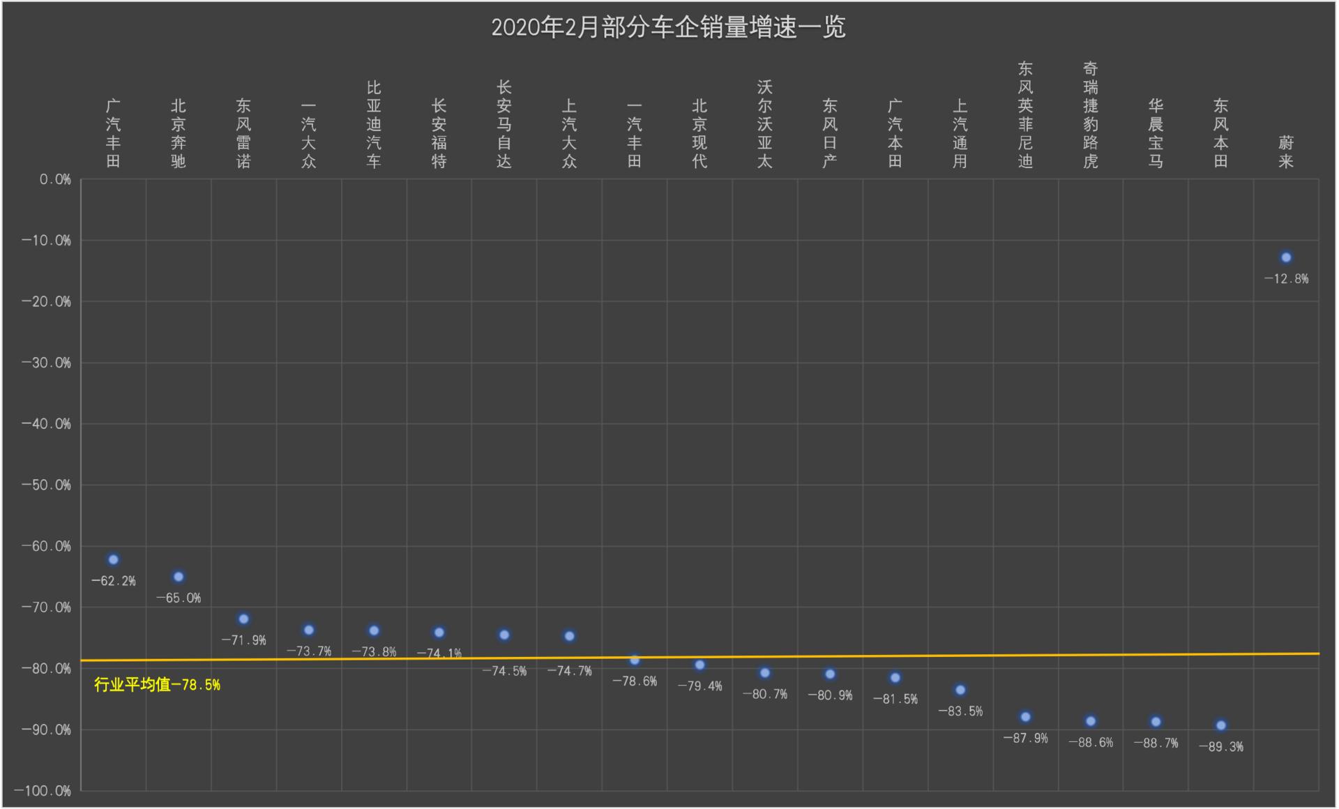 蔚来此次销量下滑,主要受大环境影响。受疫情影响,中国2月份乘用车市场零售整体受到较大冲击,蔚来销量。3月9日,乘联会发布的2月份乘用车市场零售数据显示,2020年2月全国乘用车市场零售25.2万台,同比下降78.5%,对比19年2月因春节因素同比下降19%属于超低基数,这意味着今年疫情影响下的车市属于严重异常。