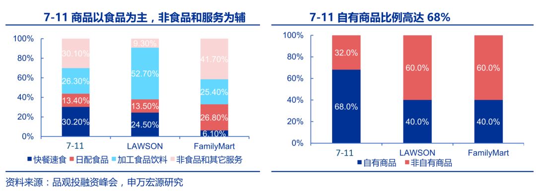 从选品来看:高毛利、快周转的鲜食和即食品,占7-11日常营收的70%,同时自有品牌的销售占比达68%以上。反观中国市场的友商们,收入中即食品比例超过40%的便利店,只占总数的15%; 而自有产品比例达到30%的,只占7%。 “鲜食+自品牌”的选品策略,保证了单品毛利率。