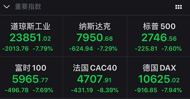 美国股市周一录得2008年金融危机以来最大单日跌幅,经济衰退的担忧加剧,因油价暴跌和新冠疫情忧虑持续。道指收盘暴跌逾2000点,标普500指数开盘仅四分钟就触发了1987年“黑色星期一”崩盘后设立的熔断机制。