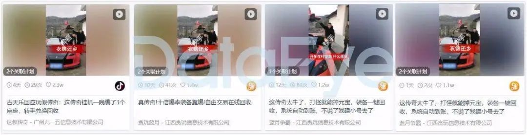 首当其冲的是传奇类游戏。这个品类一向热衷于明星代言和情怀牌的买量打法,但是近期上线了大量主投渠道为快手短视频,且内容更接地气更剧情化的买量素材。
