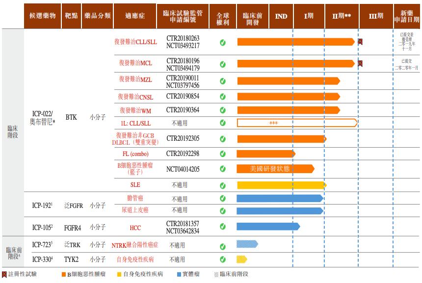 (诺诚健华现有候选药物的研发状态;图源自招股书)