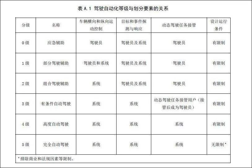 自动驾驶分级标准。