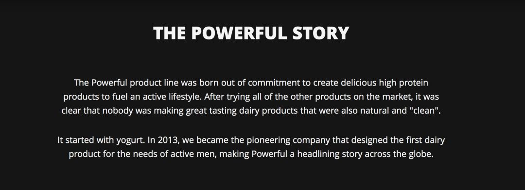 Powerful在成立之初就传达了比较清晰的品牌理念——给男性群体创造更加健康积极的生活方式。品牌最初的产品是针对男性群体的高蛋白健康酸奶,创始人也在媒体报道中表示,因为看到市面上“针对女性的产品很多,但对于男性群体的产品则相对少有”,所以发现了这一市场。