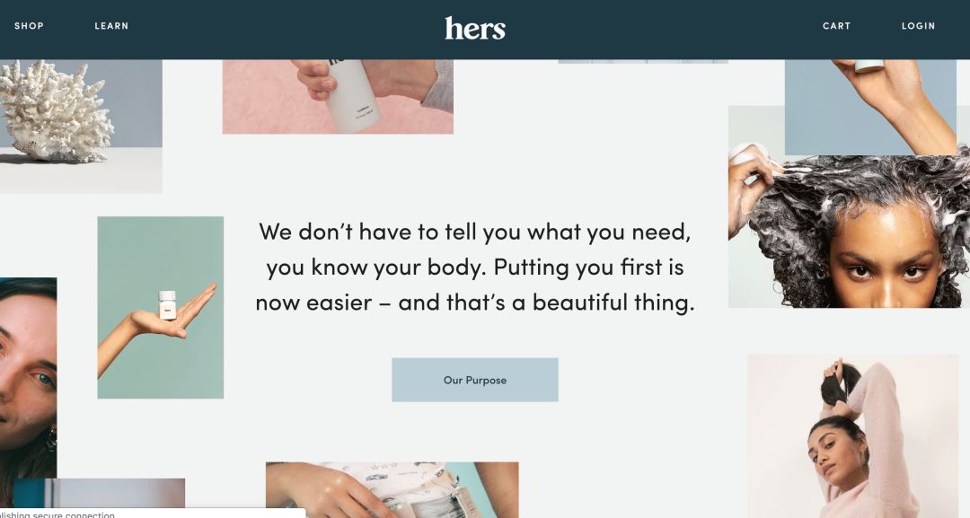 从目前公司发展阶段来看,HIMS这种围绕垂直人群健康问题的产品塑造和营销思路,得到了一定验证。公司也将这种思路运用在了另一个人群——女性上。在2018年下半年左右,HIMS团队开始准备针对女性健康的新品牌——Hers。相继发布了针对女性性健康,皮肤护理和脱发等场景的产品,品类上也包括保健品、药品和个护产品。