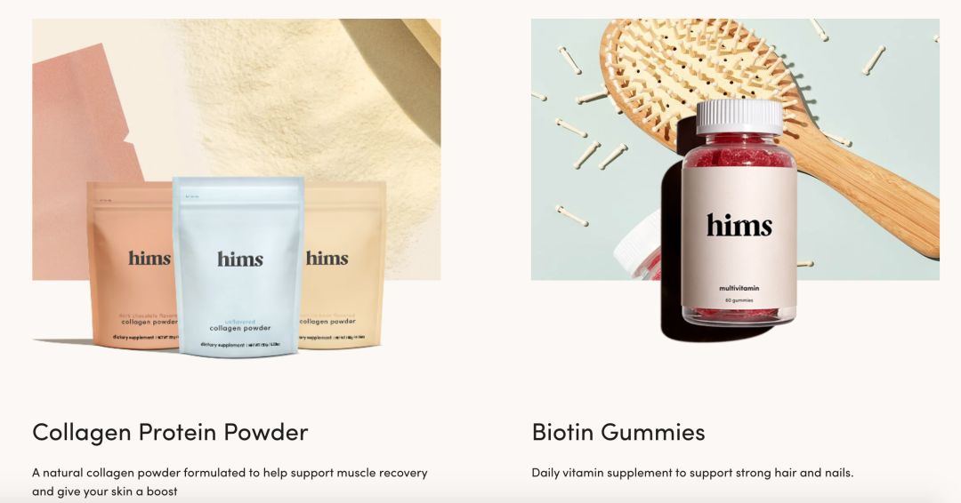 HIMS的一些保健品和功能食品,来源:HIMS官网