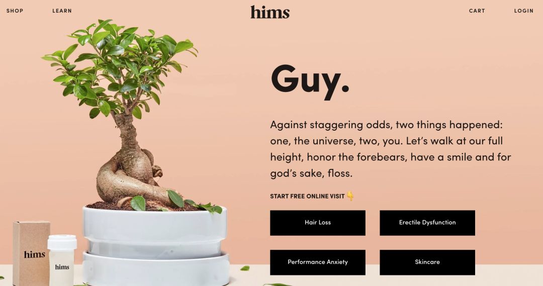 三、美国创业公司HIMS通过直接、清晰的功能场景切入,塑造男性健康生活DTC品牌的案例启示