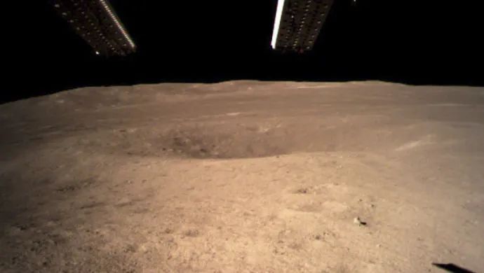 这张照片相信大家都已经很熟悉了,这是嫦娥四号探测器着陆月面之后拍摄的第一张近距离的月背影像图。