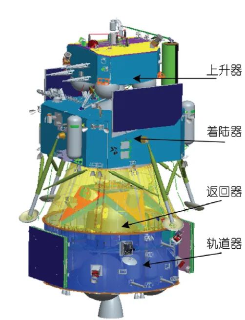 它包括四个部分:轨道器负责地月往返;着陆器负责带着上升器一起着陆到月面;开展采样之后,上升器负责从月面起飞,飞到月球轨道之后,和轨道上的轨道器对接;返回器负责携带样品着陆地球。