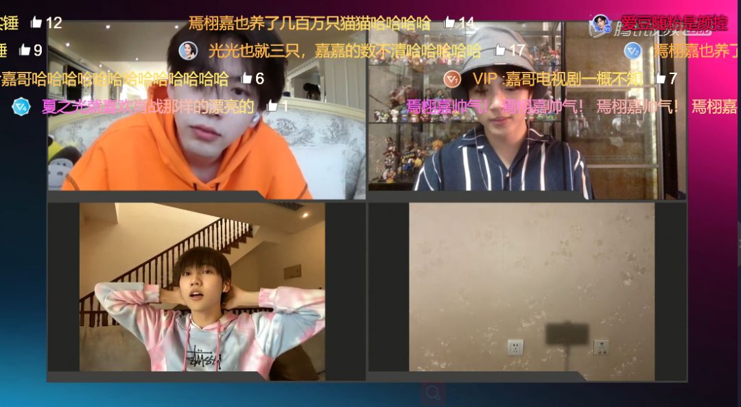腾讯视频上线的《鹅宅好时光》,更突出艺人对粉丝的陪伴性。节目分为中午和晚间两场,每场会邀请几位关系相熟的艺人进行互动。同时,节目在连线前也会搜集粉丝的诉求,让艺人在节目中为粉丝送福利。