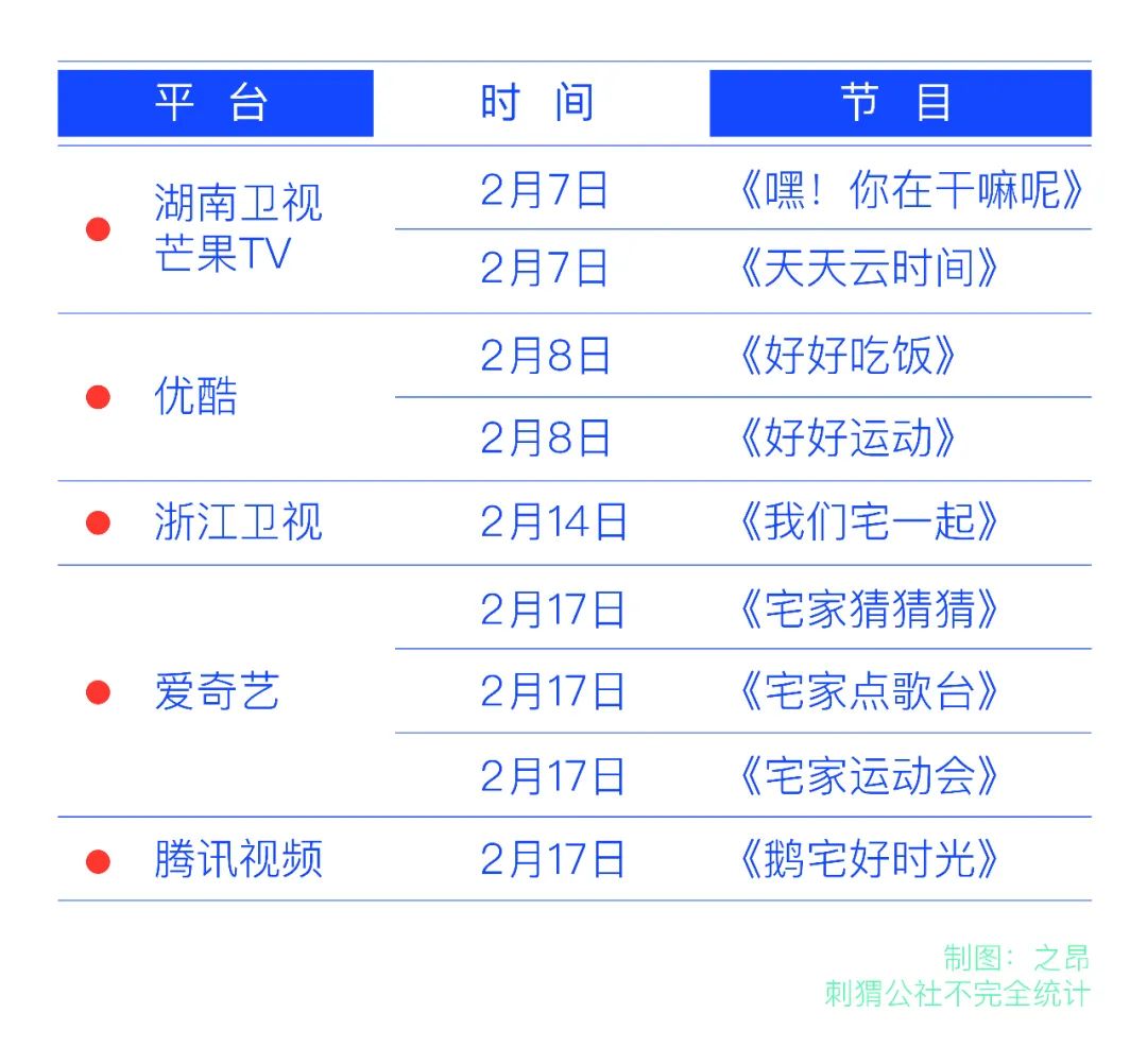 它们都是特殊时期下的特殊产物。2020年2月,全国多家平台纷纷上线自制“宅综艺”,数量多达十多档。