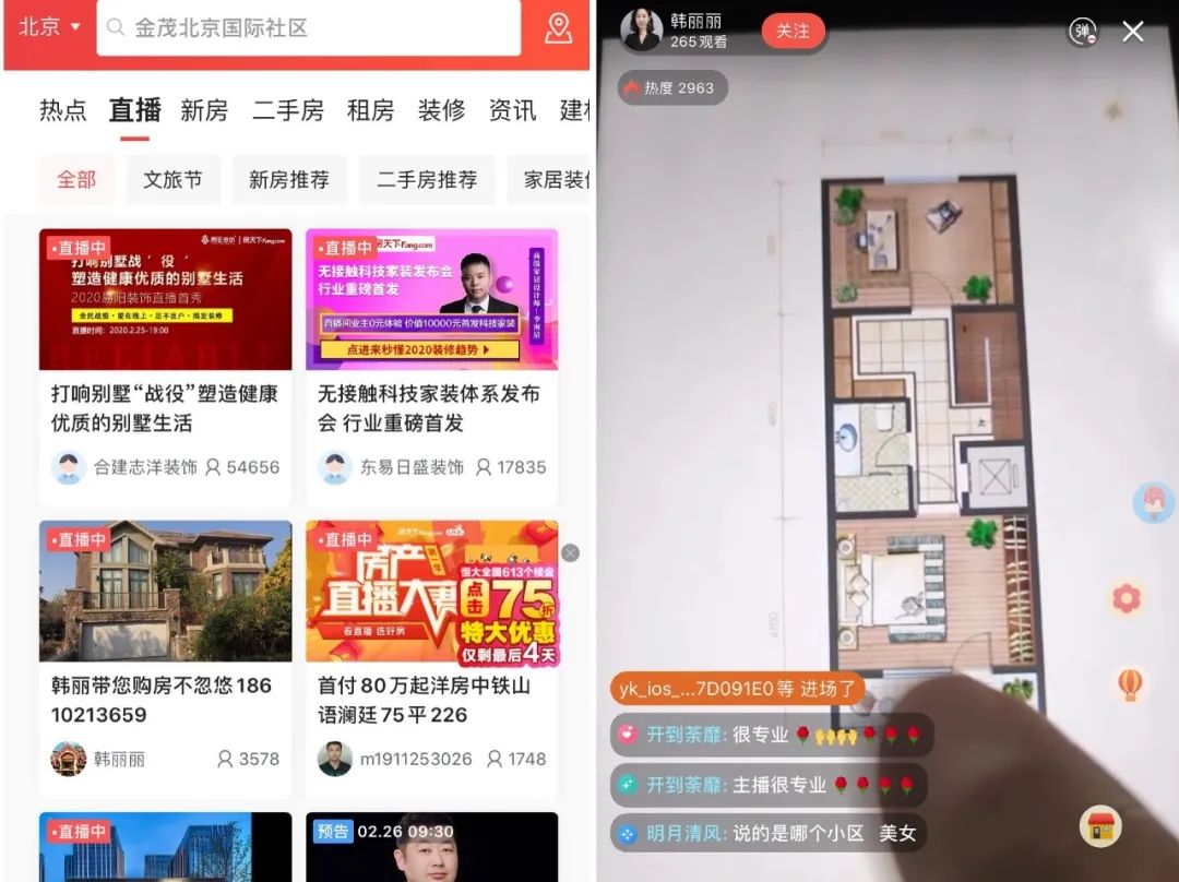 淘宝在2020年2月公布的数据显示,一天之内,全国近百个城市的5000多位房地产置业顾问,在淘宝直播开通了“云卖房”,围观人数超过200万;2月中下旬,快手商家号也为房产行业推出了特别直播活动,最高人气直播间的累计参与人数高达10万。