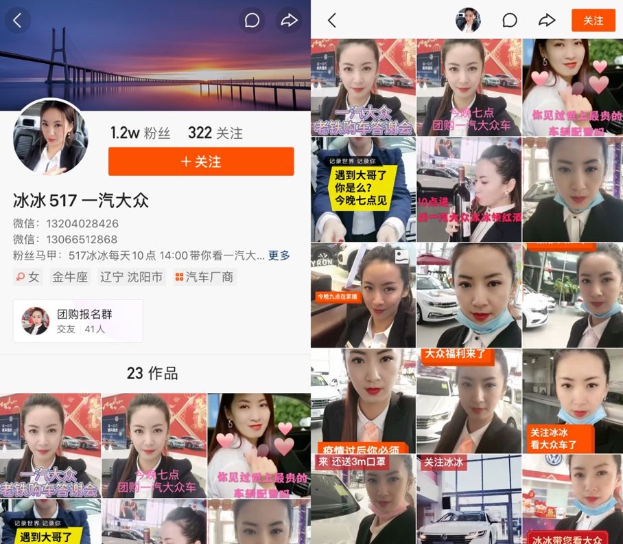 在沈阳一家大众4S店工作的冰冰表示,店里从年后起就断了客源,直播几乎是唯一的选择。2月初,她在快手上开通了直播,和上班一样每天准时播两场。不到半个月,她积累了上万粉丝,还开了两个单。