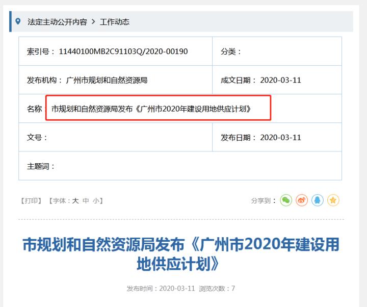 近日,广州市规划和自然资源局公布了《广州市2020年建设用地供应计划》(以下简称《供应计划》),凡对计划供应宗地有使用意向的单位或个人,可向市规划和自然资源局提出咨询或预申请。