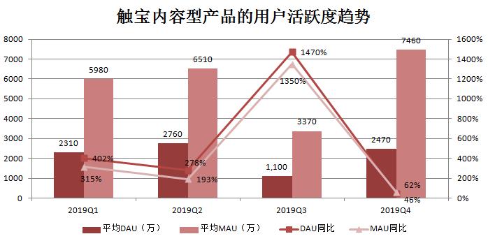 偏向to B的内容服务业务仍然是触宝收入增长的主要驱动力。财报显示,2019年第四季度触宝的内容产品营收占总收入的近94%。目前其内容型系列产品的平均DAU已经达到2470万,比2018年12月的 1690万增加了46%。