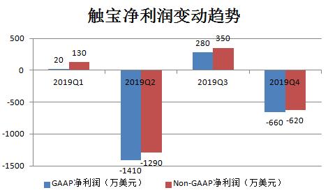 触宝本季度净亏损扩大。据美国通用会计准则,触宝第四季度净亏损为660万美元,超过彭博520万美元的一致预期,去年同期为380万美元。非美国通用会计准则下净亏损为620万美元,去年同期为460万美元。