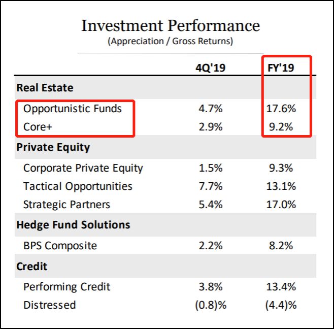黑石资产组合投资表现(来源:黑石集团2019年四季报)