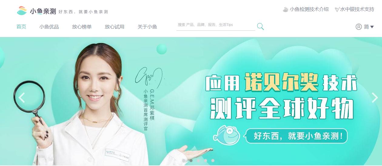 水中银推出“小鱼亲测”平台,面向终端消费者,将检测过的产品信息、数据等展示在平台上。