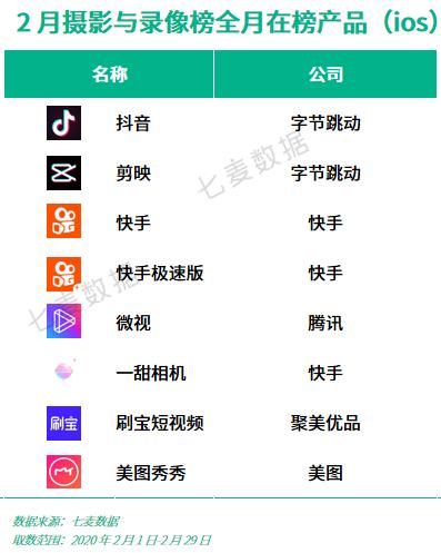 此外,刷宝还多次联合当红流量明星现身刷宝录制短视频,据媒体公开报道显示,刷宝已签约 180 多家 MCN 机构和 3000 多名短视频 KOL。而 2 月人们空闲时间的增长则助力了刷宝短视频的增长,使其在 2 月全月均在摄影与录像榜 Top10 以内。