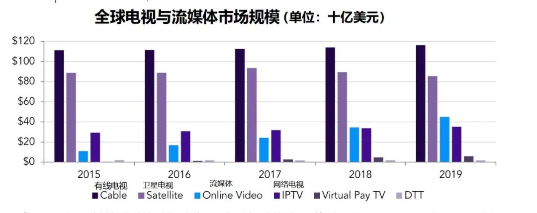 但是到目前为止,流媒体创造出的市场规模其实远远不及有限电视、卫星电视。