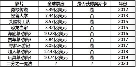(皮克斯近年来作品成绩)