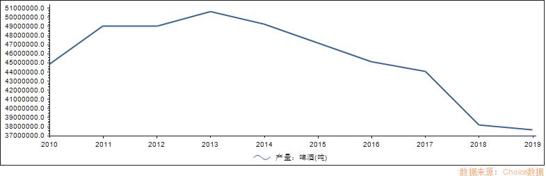啤酒公司股价不振的底层原因其实只有一个,就是需求低迷:中国啤酒年产销量从高峰时的5000万吨,降到了2019年的3800万吨。