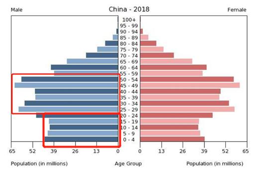 在中国,10年前曾是啤酒消费主力的中国男性,现在逐渐进入了35-55岁的中年阶段;从人口结构图上可以看出,本应承接这部分消费力的新生代青年男性数量断崖下跌,只有高峰期的60%左右。