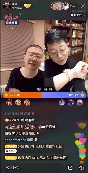 在快手,李诞的《诞愿人长久》连线giao哥、朱一旦等多位快手网红,还与笑果文化旗下艺人们线上“团建”;在抖音,李诞一个半小时的“欢乐DOU包袱”直播收到106.6万音浪,折合人民币约10.6万元。
