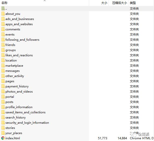 至此,我们对Facebook抓取数据的范围和逻辑已经有了一定的认知,如果想再进一步、更加具体地了解Facebook都收集了哪些使用数据,还可以向平台申请“下载你的信息”,在平台审核通过后,再次输入登录密码验证,便可以得到一个庞大的压缩包。压缩包里是Facebook收集的与你相关的站内站外使用信息。