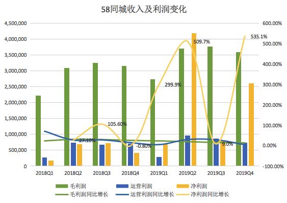 如果不考虑这部分投资收益,则58同城2019年四季度的净利润为6.5亿元,同比增长57.1%。