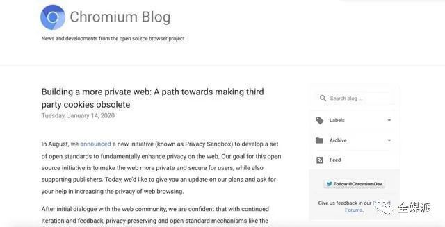 2020年1月14日,Google宣称:为了保护用户隐私,其旗下浏览器Chrome将在两年的时间内逐步删除第三方Cookie。早先,Mozilla的Firefox浏览器和Apple的Safari浏览器已经禁止了第三方Cookie。