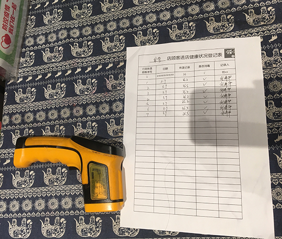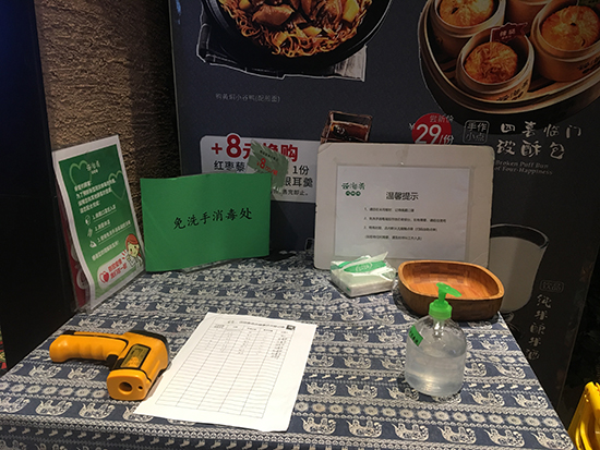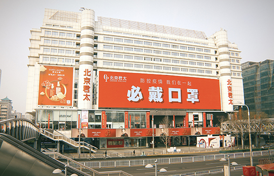再往北走,位于王府井大街138号的北京apm商场门口有专人测量体温,个别店铺未营业,大门营业时间9:00至10:00不变,但商户基本在下午6、7点闭店。