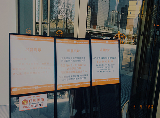 3月9日、10日,记者戴着口罩穿梭在曾经熙攘的购物中心里,感受到的除了前所未有的空旷,还有一丝暖意。