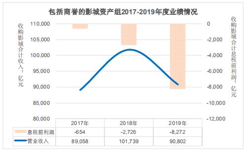 其中万达影城并购的商誉减值,如前文所述,主要是受到国内电影市场观影人次下滑因素的影响,并购的部分影视运营情况无明显改善,产生了巨额的商誉减值。
