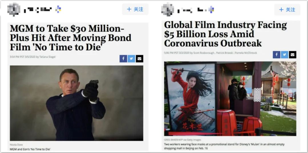 国内影视行业的经历,给全球影视行业敲响了警钟。有外媒分析称,仅《007:无暇赴死》一部影片就可能导致至少3000万美元的损失;甚至还有媒体预测,本次疫情会导致全球影视行业高达50亿美元的亏损。
