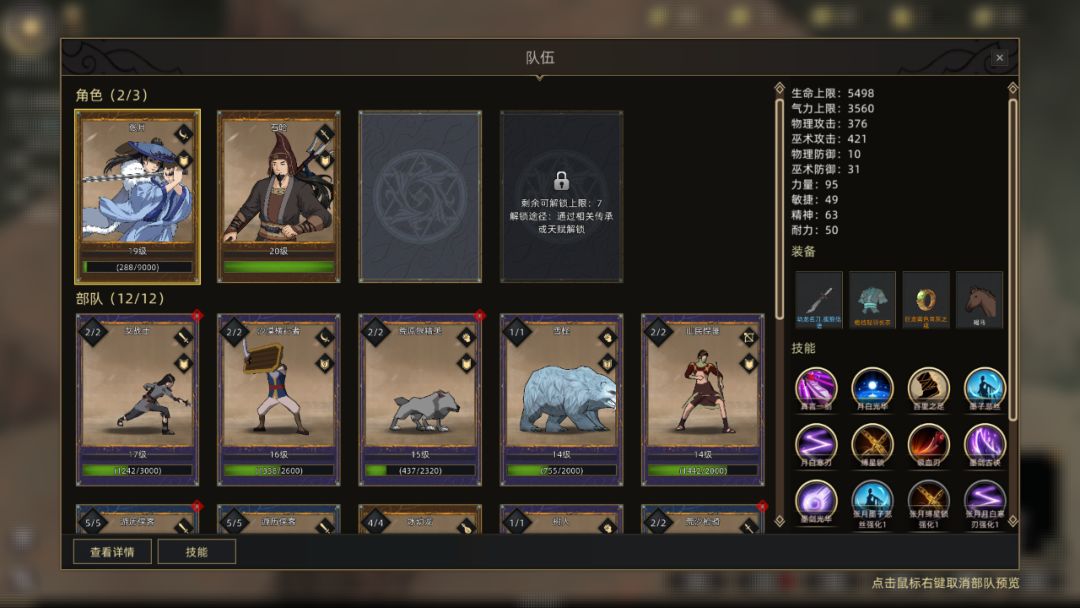 玩家可以探索主城与聚落,一路招兵买马,获得各位角色的好感,在各大势力之间斡旋,使用魔法技能,率领几十人的队伍跑商、劫掠、地牢探险。