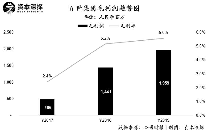 公司2019年毛利润达到19.59亿元人民币,同比增长36%;毛利率为5.6%,相比2018年提升0.4个百分点。公司毛利率的提升,主要由于其快运业务、供应链管理以及百世店加业务毛利率提升导致。