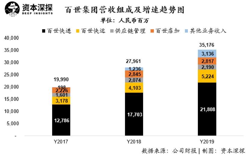 2019年百世供应链以及百世店加业务相比2018年增长有限,分别取得21.9亿及28.2亿元人民币。公司其他业务收入则增长较快,在2019年取得31.4亿元人民币,同比增长153.7%。