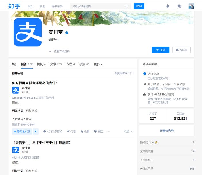 不信你再看支付宝的知乎机构号,它最高赞的两个回答都是关于支付到底用微信支付还是支付宝的,这就是网民的心态——看热闹不嫌事大。