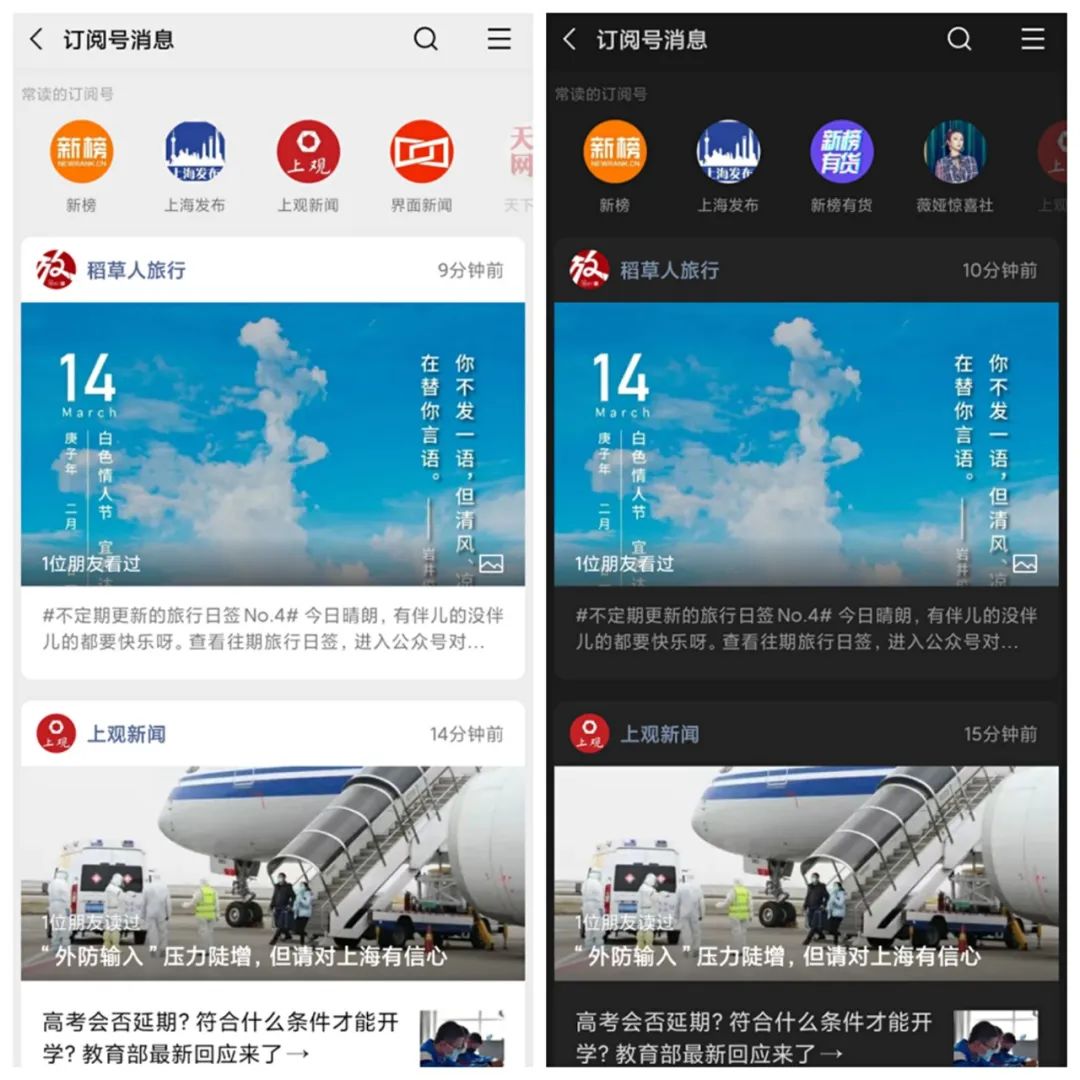 编者按:本文来自微信公众号“新榜”(ID:newrankcn),作者 Eva酱呀,36氪经授权发布。原题目《微信夜间模式来了:有哪些排版雷区?我们帮你试了试》