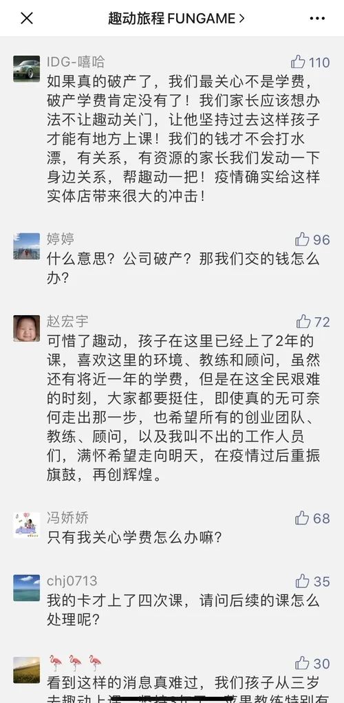 但在今天趣动旅程发声之后,其用户家长们有许多人表示,“其实这只是是给孩子报的其中一家培训机构,还有其他家机构现在情况如何还不知道,自己非常担心”。