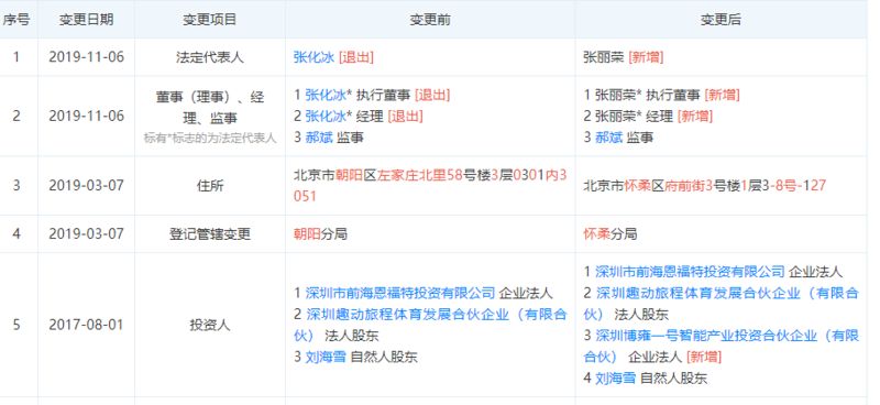 据蓝鲸财经报道,2019年7月,张化冰还以公司CEO身份出席了趣动旅程举办的“2019全国儿童体适能教育行业发展论坛”,并接受了媒体采访。天眼查资料显示,实际上,在2019年11月6日,张化冰才正式卸任公司执行董事及法人代表。而在夏令营事件之后到2019年11月,公司一直都未有人事变动。