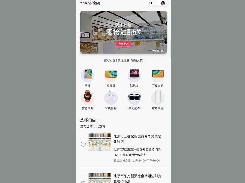 为了在疫情中杀出一条血路,华为、OPPO还上线了微信小程序店铺。今年2月“华为体验店GO”率先开始应用,通过微信小程序下单可以选择最近的门店送货。