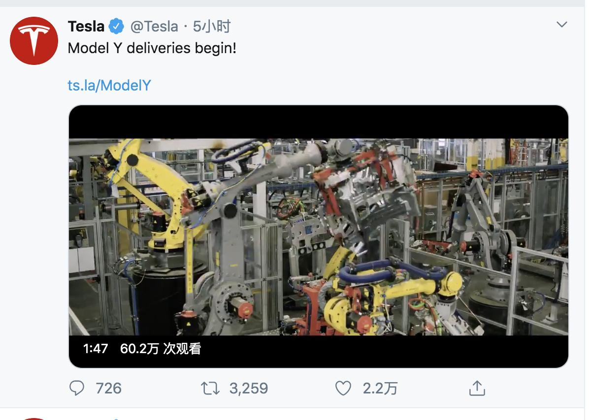 36氪获悉,特斯拉周一在官方社交媒体账号表示,已经开始交付Model Y,与市场分析师的预期一致。此前据Electrek报道,已经有客户称收到了Model Y交付的消息。德银分析师在12月表示,特斯拉有望在2020年第一季度开始交付Model Y,这要比马斯克最初的预期还要提前。
