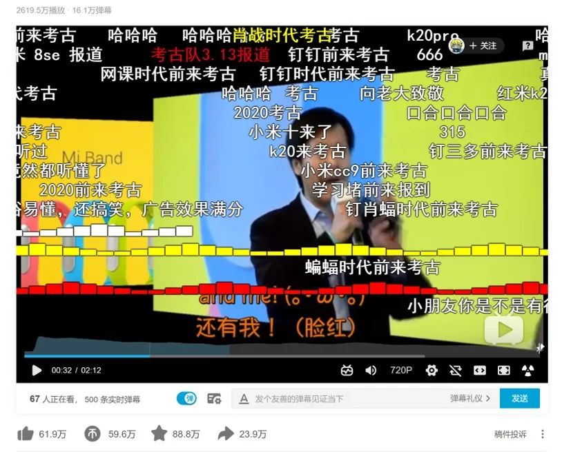在B站的弹幕词典中,“XX时代前来考古”是一个固定句式,“XX”指代的是目前最火的热点事件,如肖战、网课、钉钉等事件传播时;推测下,“考古”的非官方解释,大概就是翻了过去的老视频,重新刷一遍。