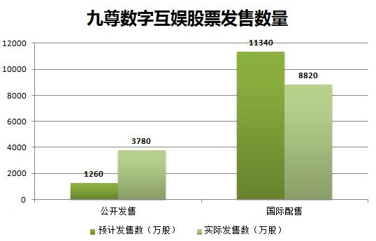 据九尊数字互娱公告,香港公开发售股份共获14101份有效申请,合计2.90546亿股,此数额约为香港公开发售原计划的23.06倍。由于超额15倍以上但少于50倍,故2520万股发售股份已由国际配售重新分配至香港公开发售,香港公开发售最终数目为3780万股,占总发售股份数的三成。国际配售股份在总发售股份中占七成,为8820万股。