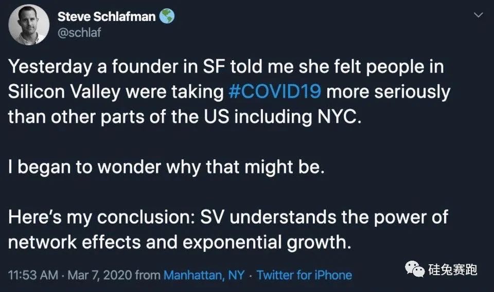 在成为美国第一个采取严厉措施的地区前,湾区的科技公司和风投早在两周前,疫情”似乎还没那么严重“的时候就开始采取防疫措施,比如要求员工居家办公、取消发布会、路演转线上等。