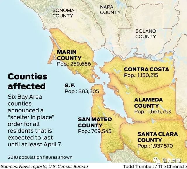 依据此"Shelter in place"公告,未来三周,生活在San Francisco, Santa Clara, San Mateo, Marin, Contra Costa 和 Alameda这六大地区的人民,应减少一切不必要外出,居家隔离,与他人保持距离。