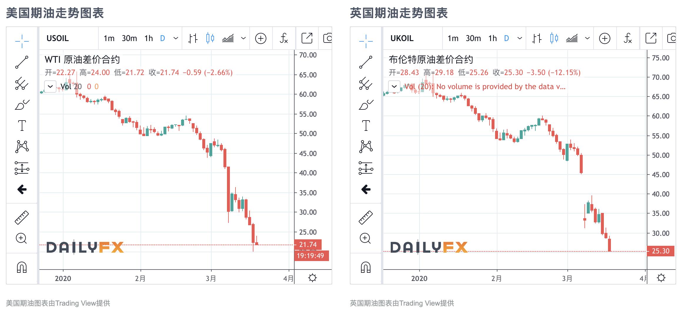 美英原油价格断崖式下跌 图片来源: dailyfxasia